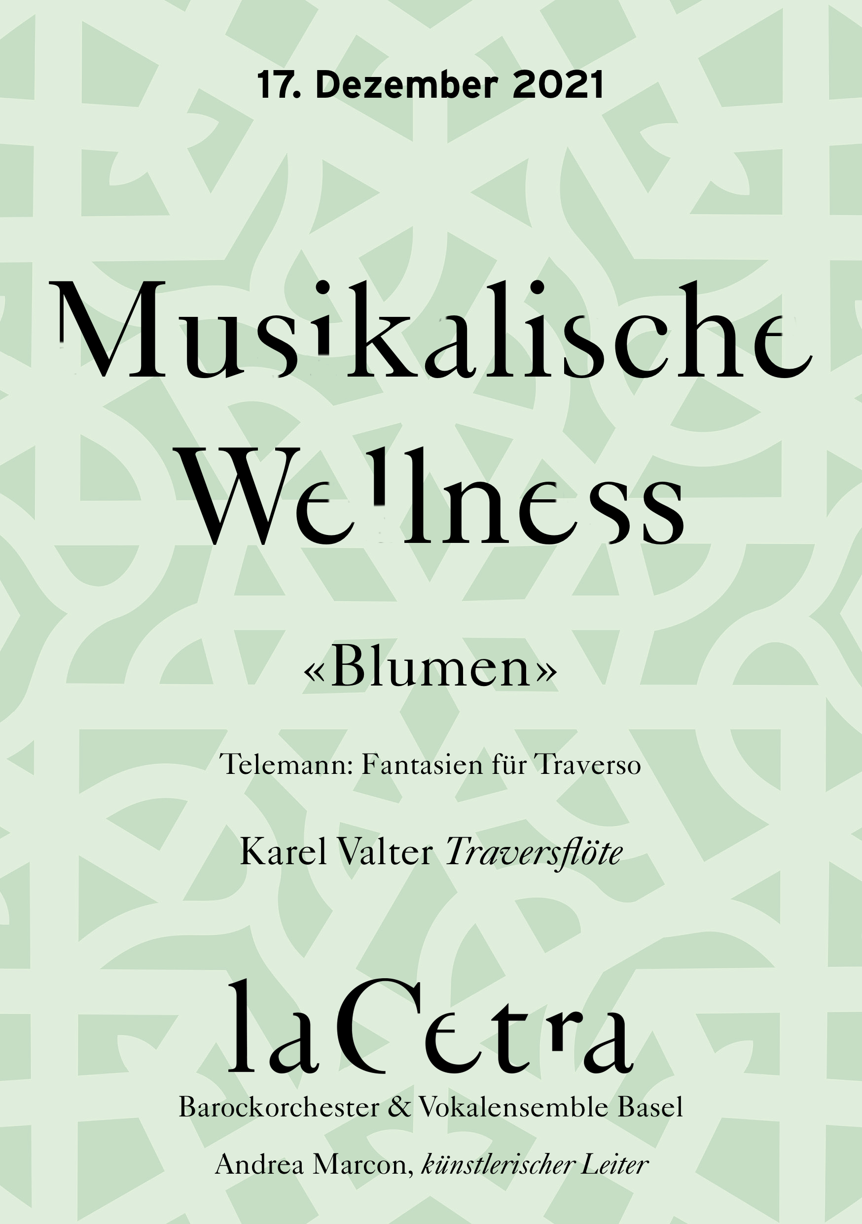 Friday, 17. December 2021 16:30 La Cetra, Studio MusicArte, Basel Musikalische Wellness – Karel Valter