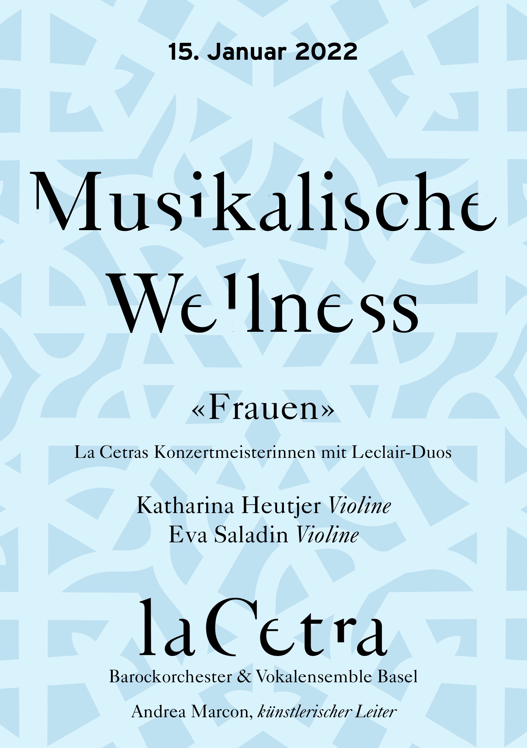 Saturday, 15. January 2022 16:30 La Cetra, Studio MusicArte, Basel Musikalische Wellness – Katharina Heutjer & Eva Saladin