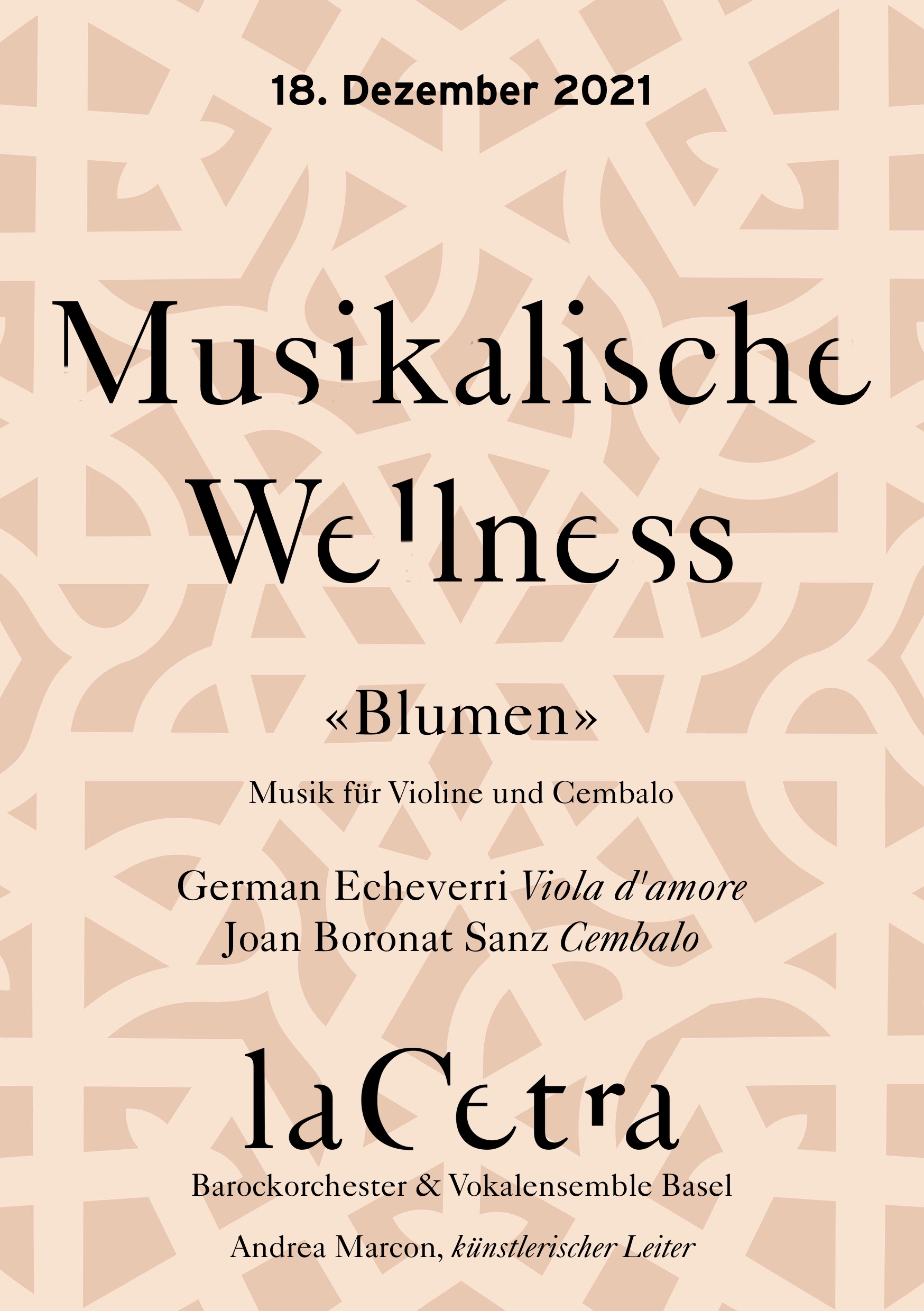 Saturday, 18. December 2021 16:30 La Cetra, Studio MusicArte, Basel Musikalische Wellness – German Echeverri & Joan Boronat Sanz