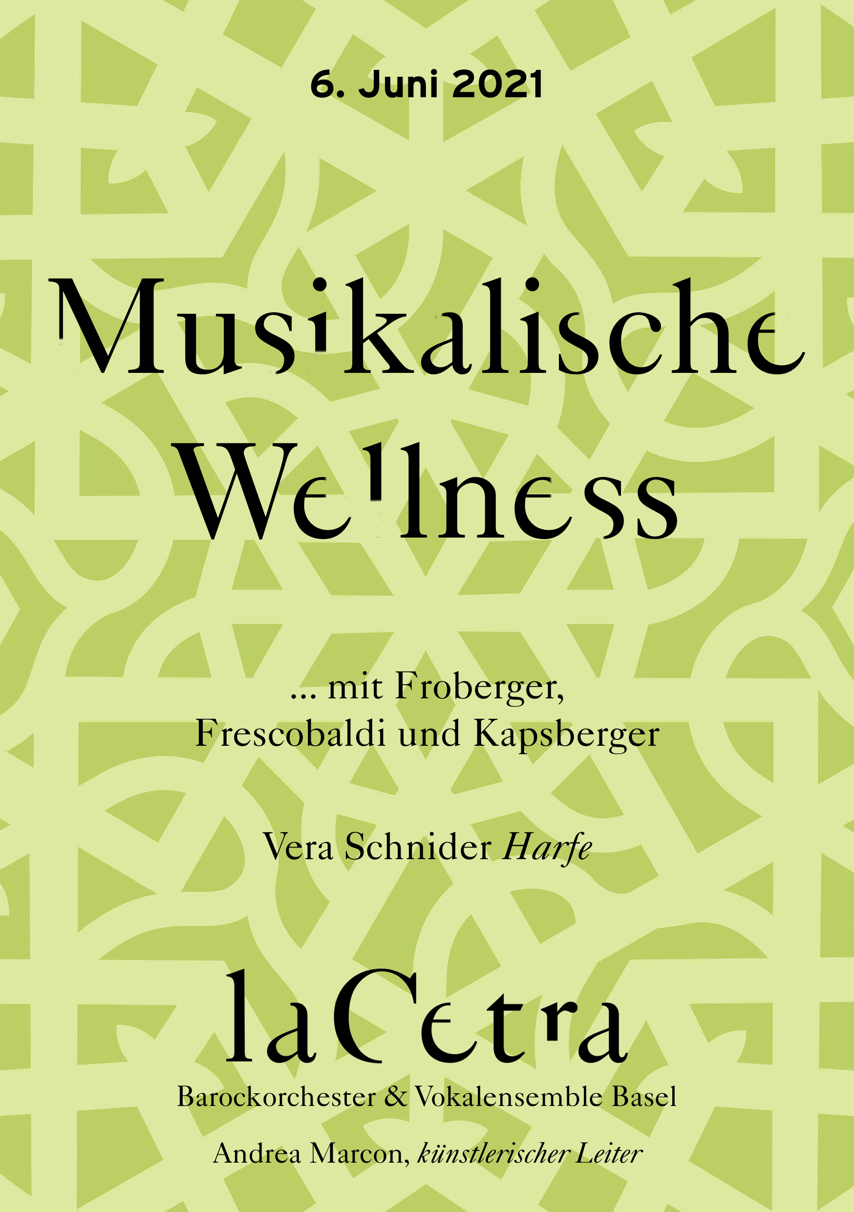 Saturday, 12. June 2021 17:30 La Cetra - Studio MusicArte, Basel Musikalische Wellness mit Bach, Boccherini und Froberger