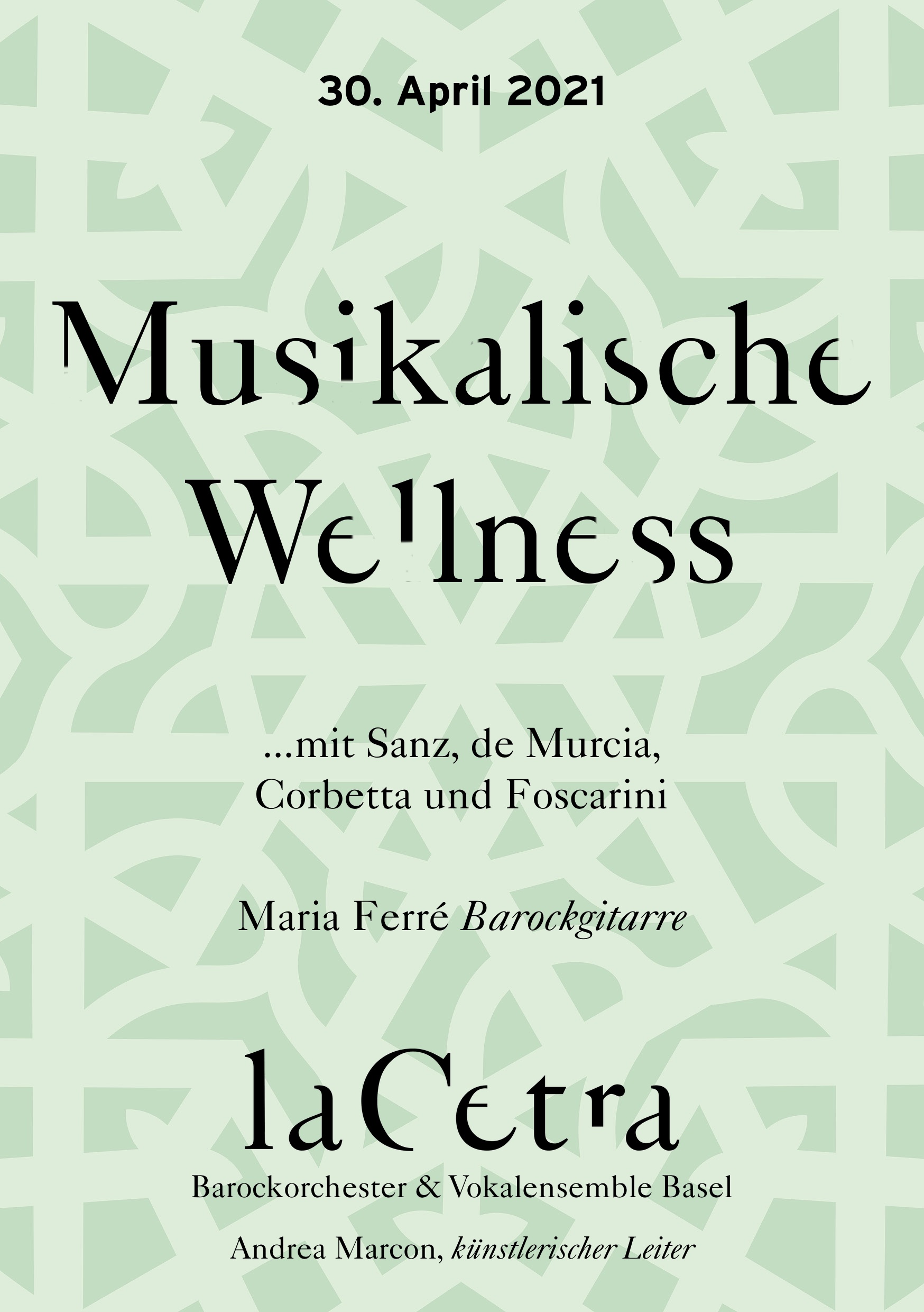 Friday, 30. April 2021 19:30 La Cetra - Studio MusicArte, Basel Musikalische Wellness mit Sanz, de Murcia, Corbetta und Foscarini