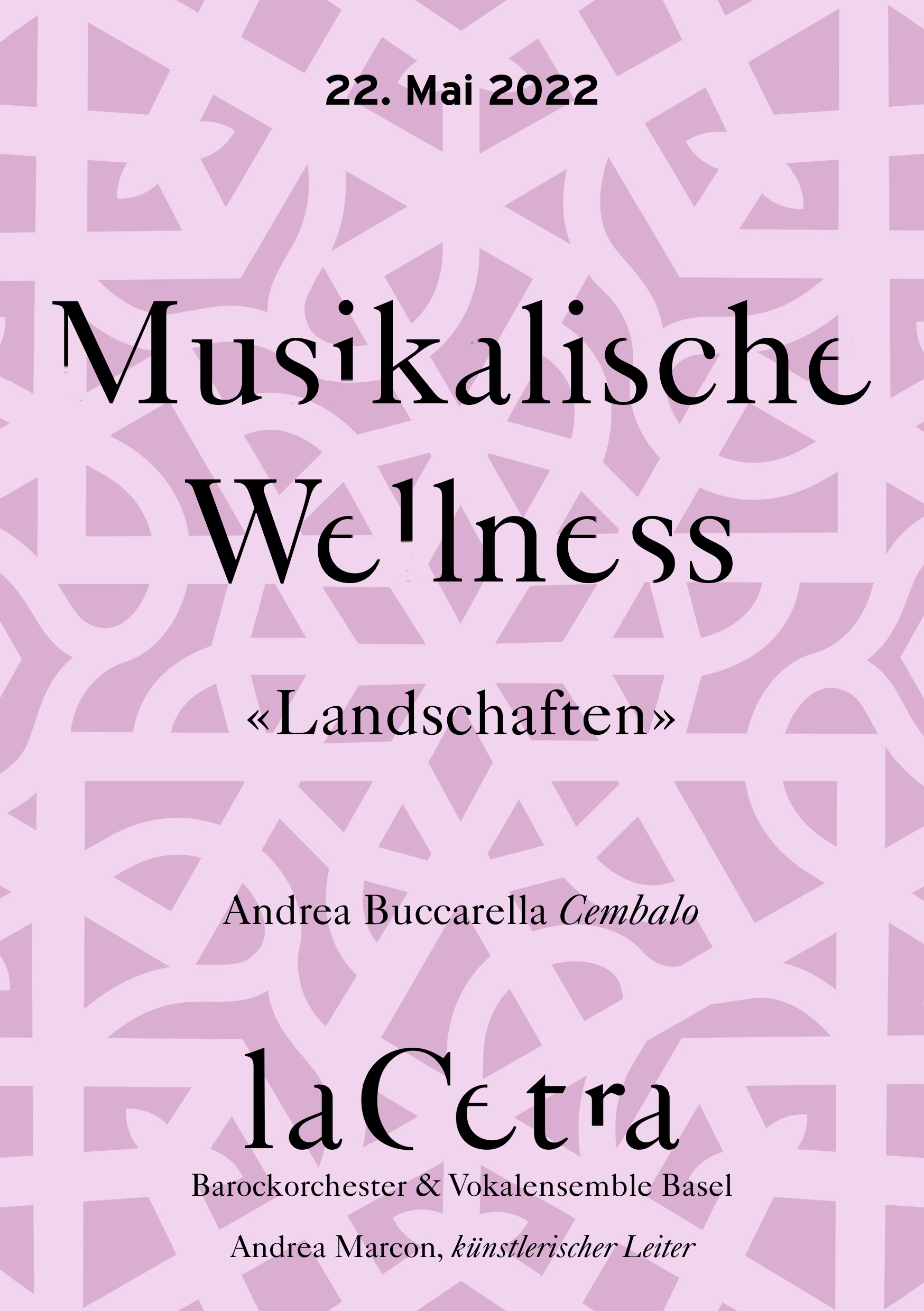 Sonntag, 22. Mai 2022 16:30 La Cetra, Studio MusicArte, Basel Musikalische Wellness mit Andrea Buccarella