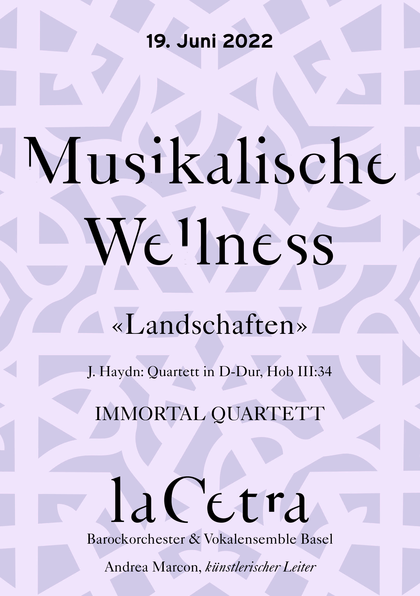 Sonntag, 19. Juni 2022 16:30 La Cetra, Studio MusicArte, Basel Musikalische Wellness mit dem IMMORTAL QUARTETT