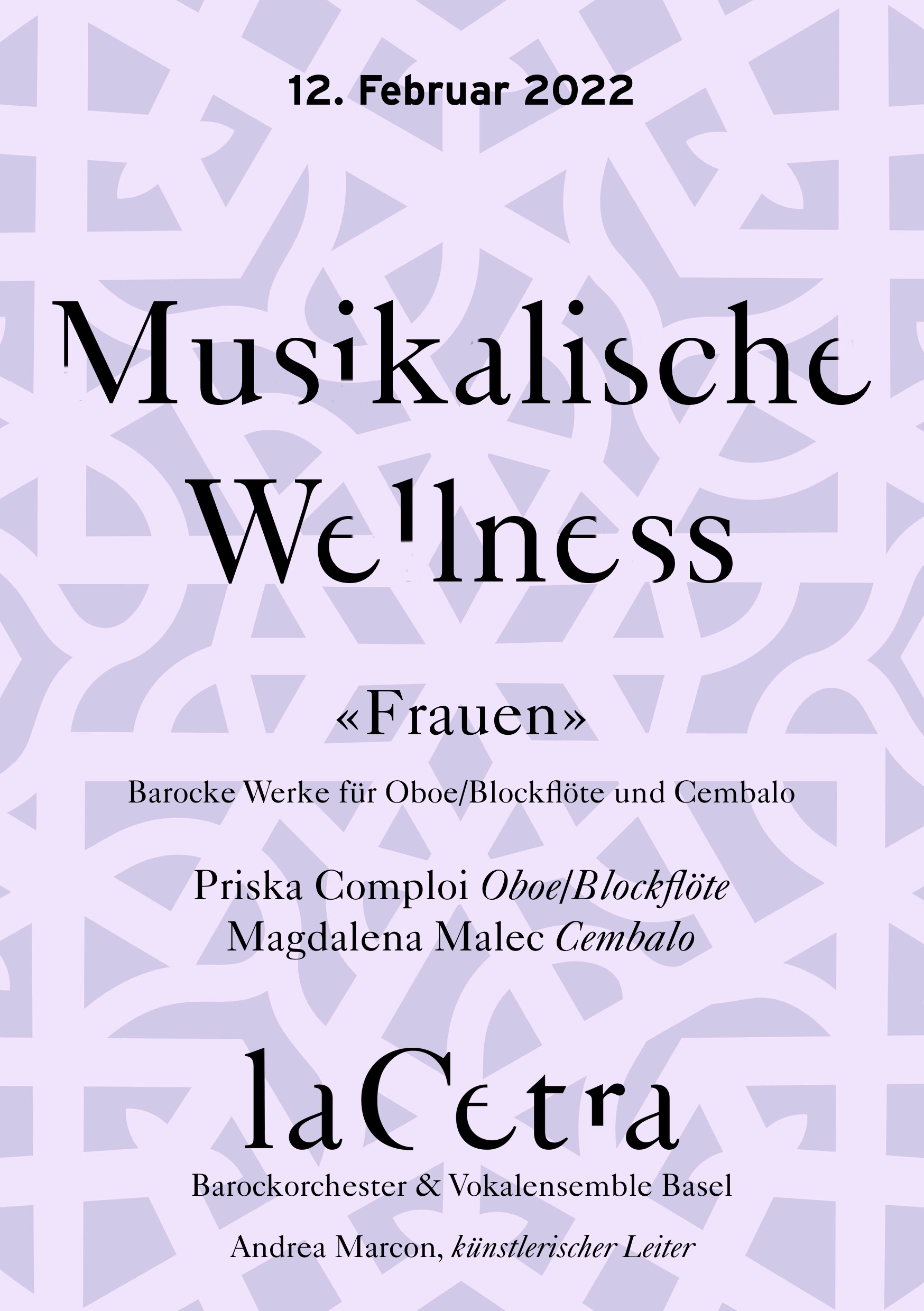 Samstag, 12. Februar 2022 16:30 La Cetra, Studio MusicArte, Basel Musikalische Wellness – Priska Comploi & Magdalena Malec