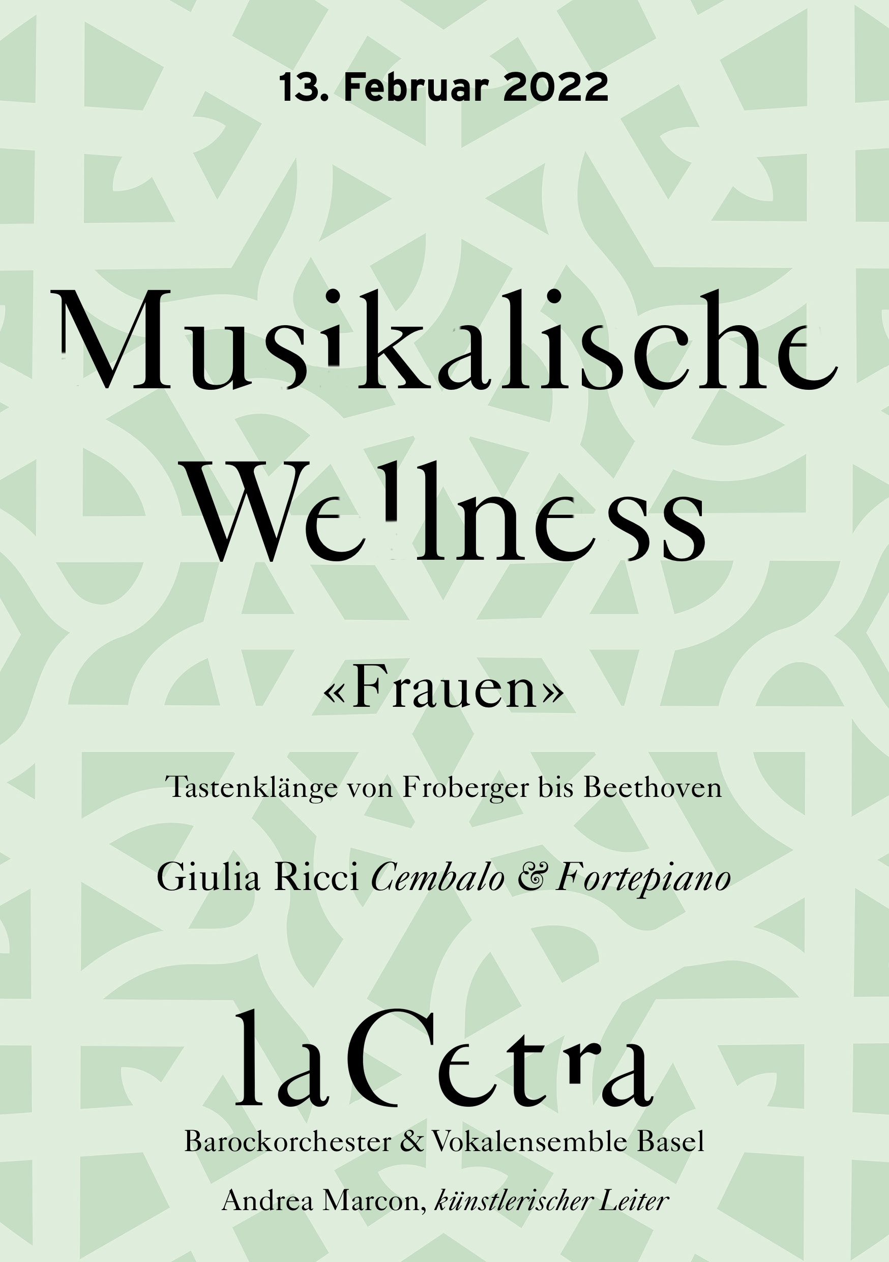 Sonntag, 13. Februar 2022 16:30 La Cetra, Studio MusicArte, Basel Musikalische Wellness – Giulia Ricci